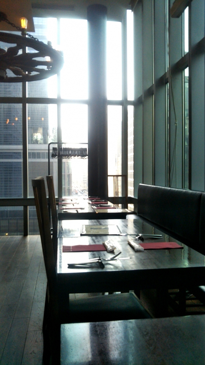 コレド日本橋にある「シロッコ」は、コレド日本橋の交差点側の角に位置していて、ガラス張りのちょっと開放感ある広い店内となっています。テーブル席や椅子なども重厚感もあって雰囲気も良いです。