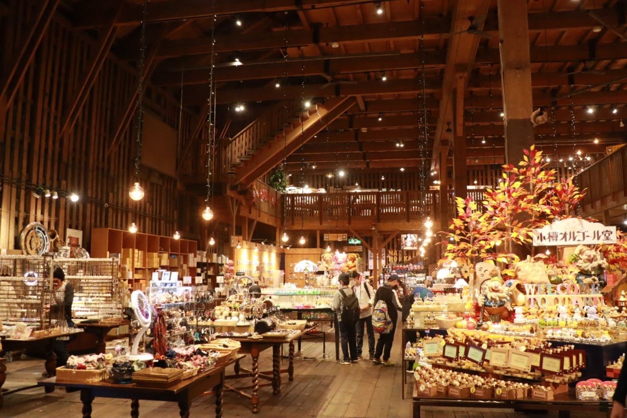 年代を感じさせる建物で、なかは煌びやかな照明の下にオルゴールが色んな種類置かれています