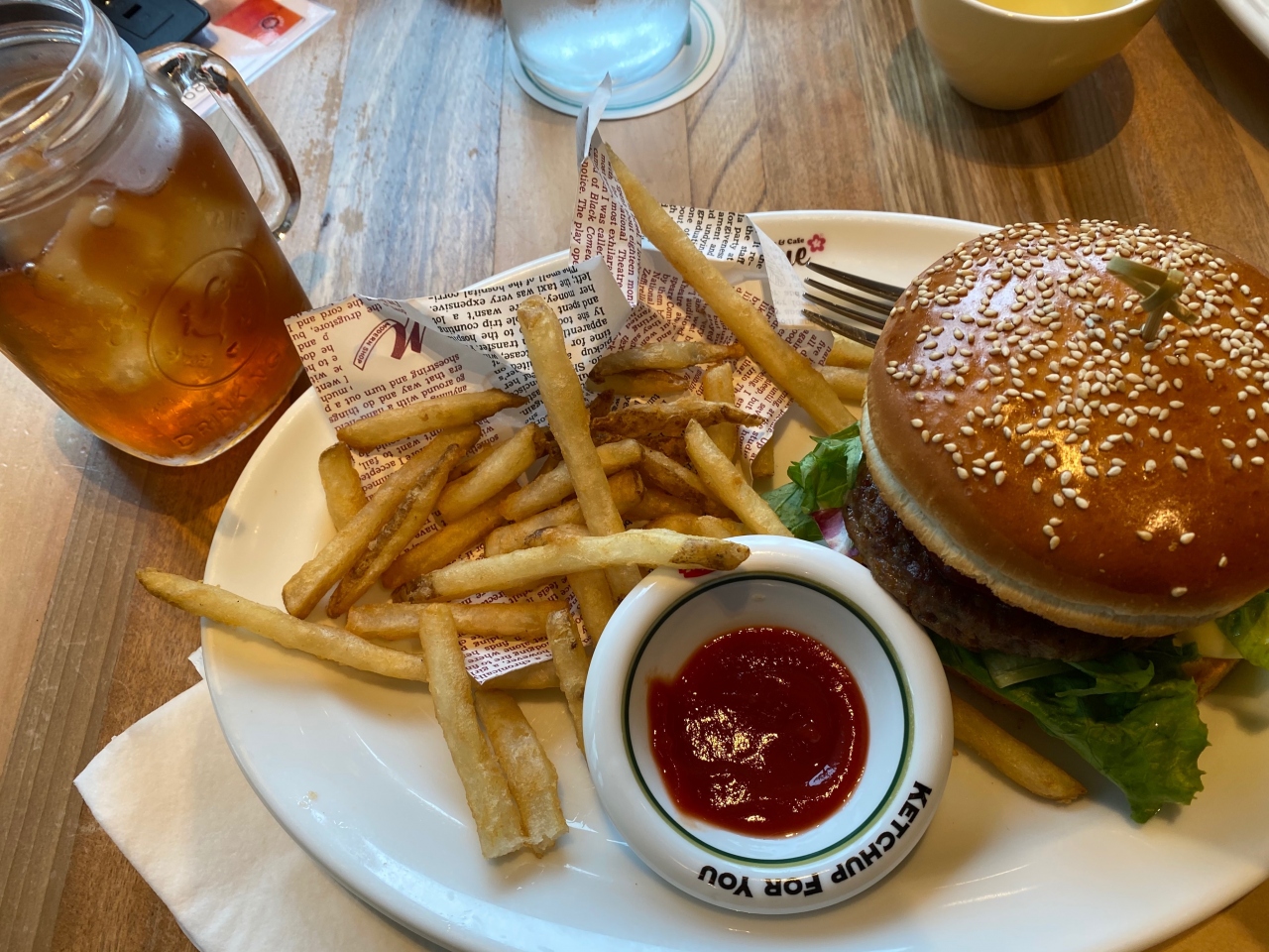 横浜トリエンナーレで横浜美術館からプラット48に向かう途中に寄りました。この辺は一区画が広くあまりお店がない中、1Fにあり広い店内で入りやすいこのお店の存在がありがたかったです。パンケーキが有名らしく周りで注文してる方が多いようでしたが、ランチでハンバーガーを食べました。なかなかボリュームもあり満足しました。