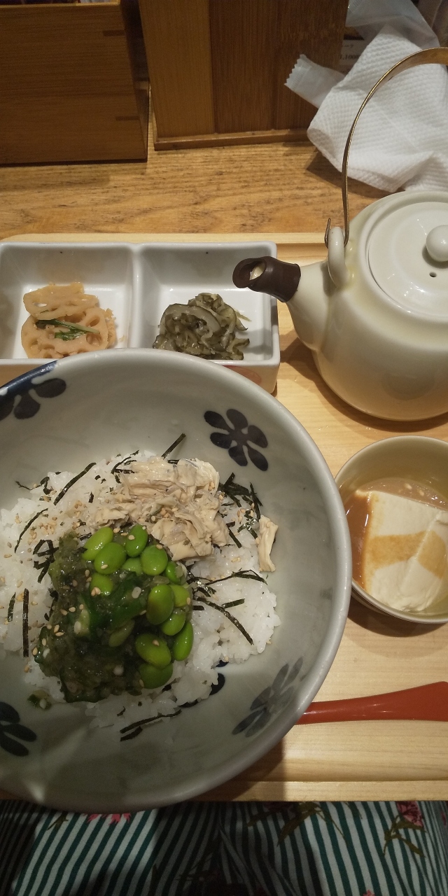 先に食券を買ってから空いてる席に座ります。ご飯の量が小中大から選べます(料金変わらず)お茶漬けでさらっと食べられるので、少食ではない人は大でいいかもしれません。出汁はおかわり出来ます。漬物と豆腐が付いていて満足です。お茶漬け種類沢山あり、美味しいです!