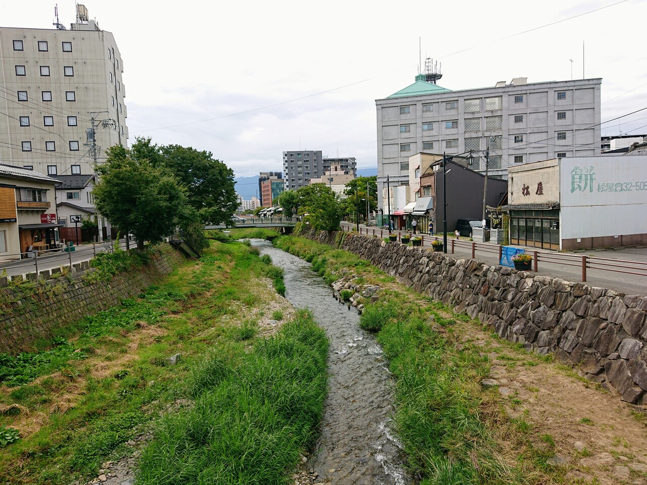 松本の二大観光通りのなわて通りが川の城側、蔵が立ち並ぶ中町通りが、川の南側にあるため、松本三散策をする際は、必ず渡る川です。