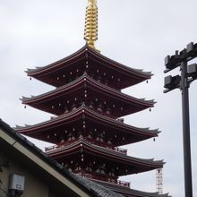観光客が少なくなっている今だったら、ゆっくりと浅草観光が出来ると思い、本当に久し振りの浅草訪問になりました。雷門、仲見世通りを抜け、浅草寺の本堂に近づくと、左側に「五重塔」がありました。中は見学が出来ないので、外観のみの見学だけでしたが、とても存在感がありました。