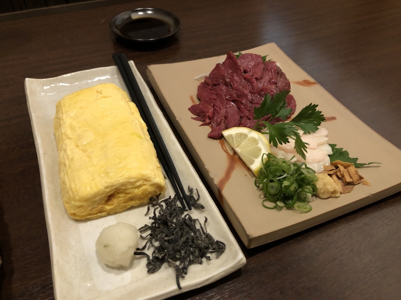 岡山駅から徒歩10分くらい、西側緑道公園沿いにある雑居ビルの3階にある隠れ家。狭めの入口なので、看板を見逃すと通りすぎてしまいそう。岡山の地酒と選りすぐった肴のお店。特に日本酒の種類が豊富で、岡山の地酒の飲み比べセットはオススメ。店員さんが好みに合わせて丁寧に選んでくれました。黄ニラのだし巻き、サワラの叩きといった岡山の定番メニューに加えて、吉備中央町の野菜にこだわったポテサラ、馬刺し、鳥刺しなど看板メニュー、さらにはピサや締めの麺、ご飯ものもあり。店員さんのサービスも良く、満足度高め。予約した方が良いお店です。