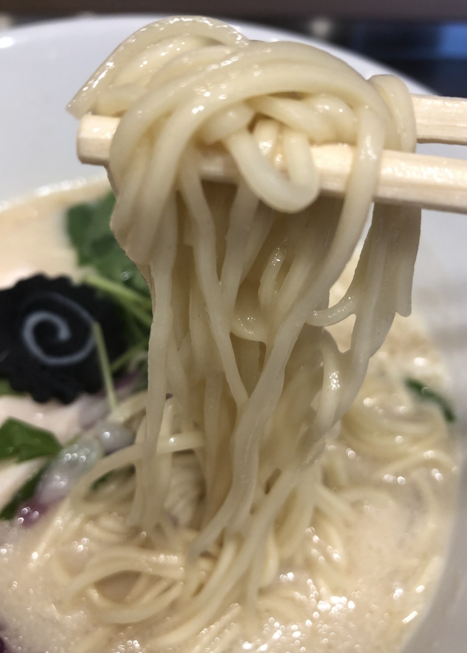 麺は細麺でスープにピッタリ、スープをよく運ぶ
