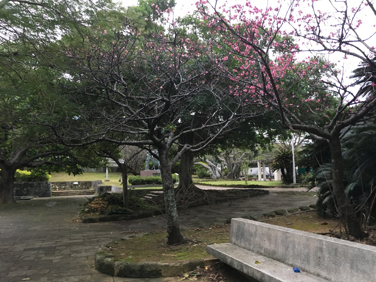 松山公園は、モノレール県庁前駅から徒歩7分くらいのところにある大きな公園です。福州園の道向かいにあるあす。フランコ、滑り台などの遊具も少しあります。緑が多く自然が楽しめる公園です。ウオーキング、ジョギングなどにも適しています。2月でしたがピンクの桜が咲いていました。ガジュマルの大きな木がありました。南国沖縄らしい公園です。