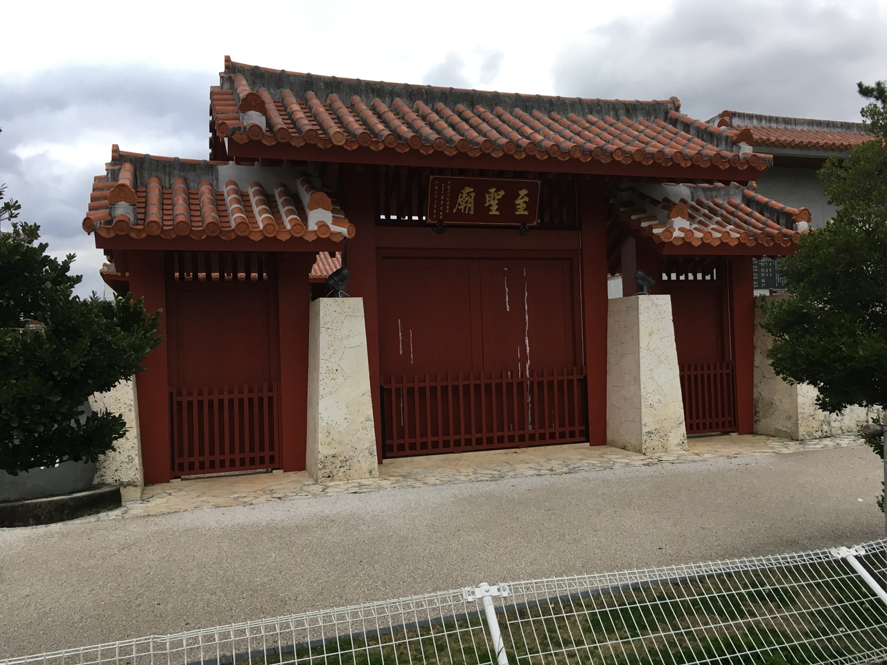 久米至聖廟は、日本最南端の孔子廟です。儒学の祖である孔子とその門弟(四配:顔子、曽子、子思、孟子)を祀る廟です。沖縄らしいべんがら色の門、建物がを引きました。現在の建物は、2013年に再建されたものです。近くに来られたら見学されることをお勧め致します。