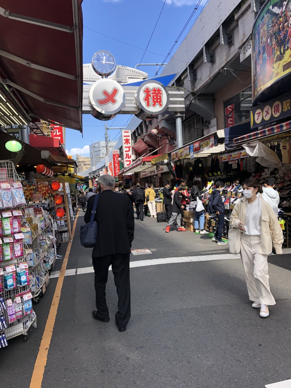 御徒町駅から上野駅まで続く長い商店街。魚屋さん、果物屋さん、衣類品などの店がぎっしり。コロナの影響で人は少ない感じでした。魚などを買う方にはいい商店街で威勢の良い掛け声が聞こえてきます。いろんな店があるので楽しいですよ。