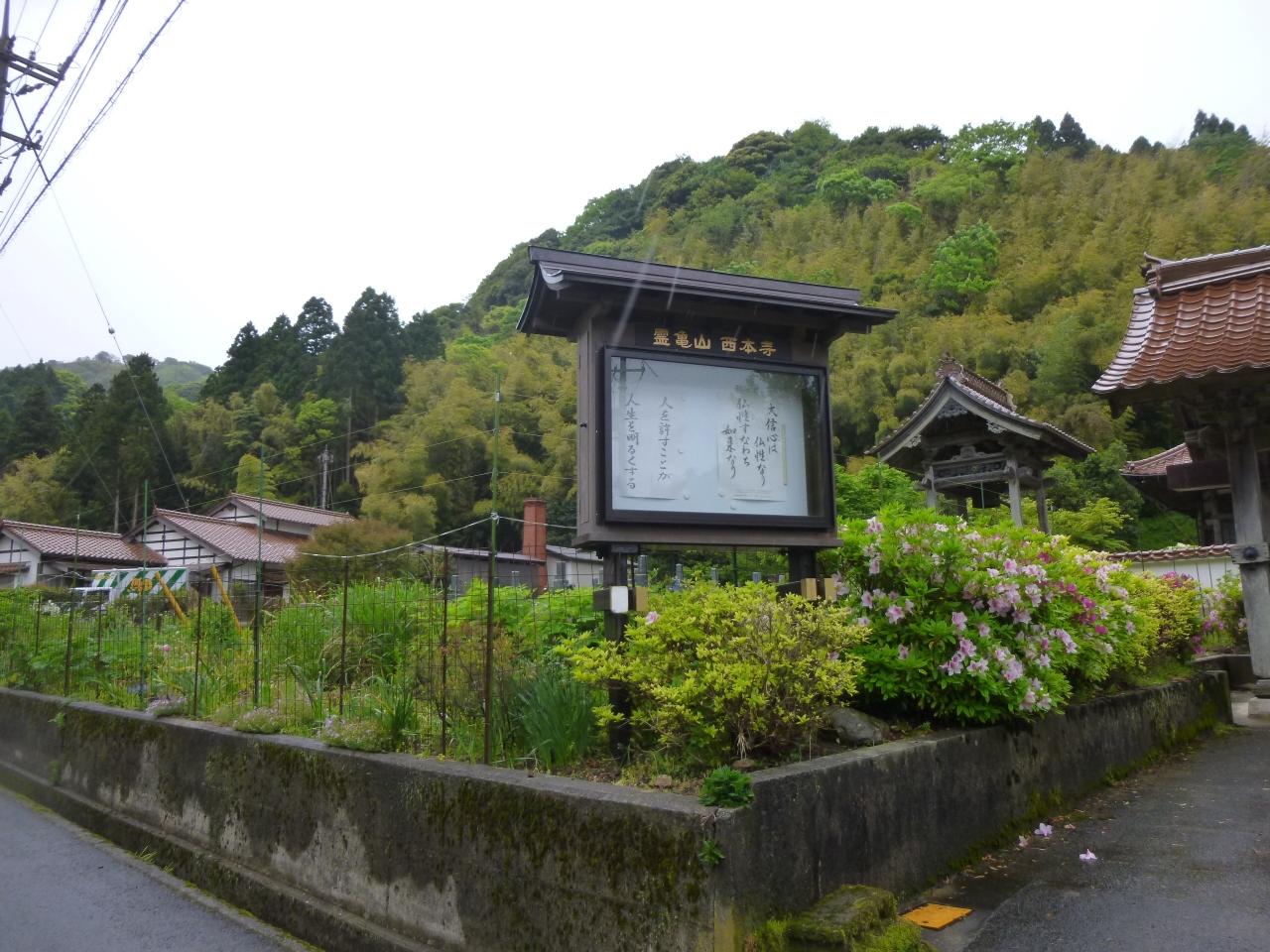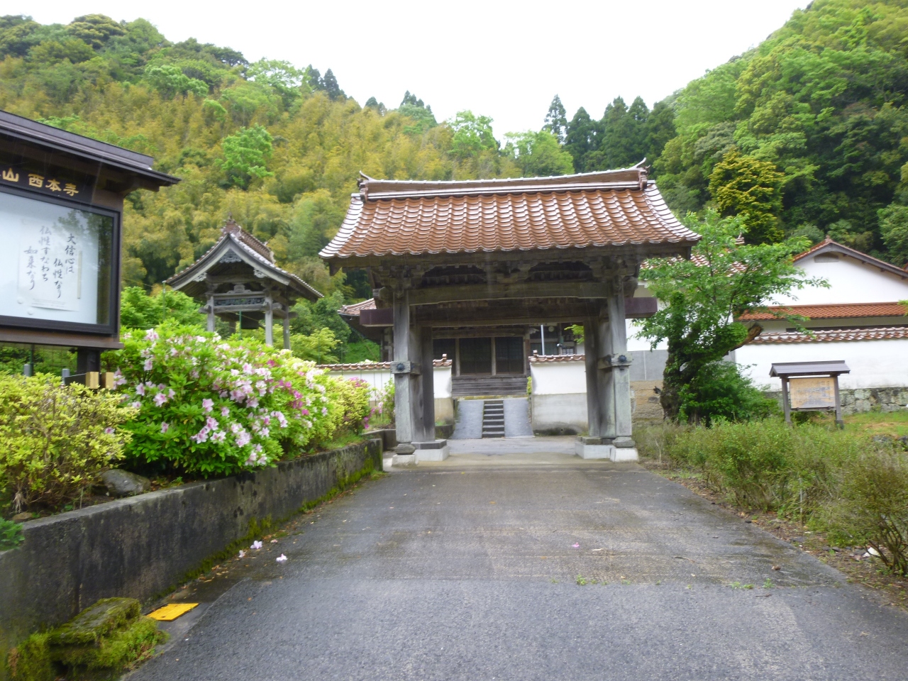 要害山山頂にあった山吹城解体後、追手門が龍昌寺の門として改造され、その後西本寺に移転されたそうです。屋根はオレンジ色の石州瓦です。この寺院は1931年の創建で当初は天台宗でしたが、現在真言宗に改宗しています。銀山の最盛期には多くの参拝客で賑わったのでしょうね。ひっそり佇む様子に400年の歴史が秘められています