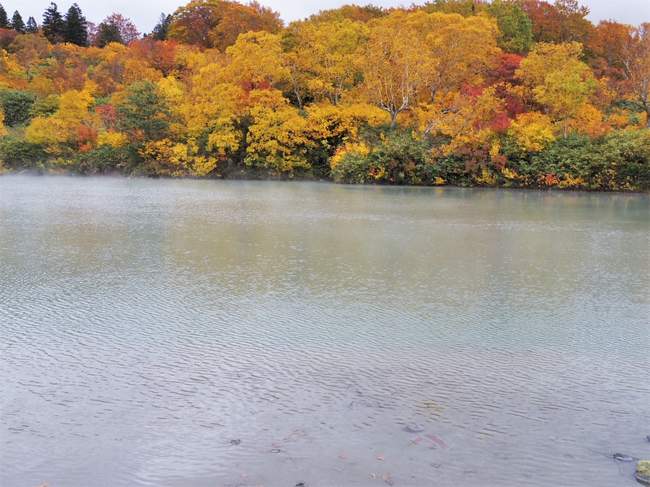 すがゆ駐車場から歩いてすぐなのですが、地獄沼前に路上駐車してしまう人がとても多くて混雑していて、車の隙間から道路を渡ろうとする人たちが危ないです。沼の周りを1/3ぐらい周回できる道があるのですが、足場は悪いです。