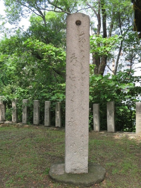 松尾芭蕉が1694年に大阪入りして、大江神社にあった料亭浮瀬にて、句会を開いたことに因んで建立されたものです。「あかあかと 日はつれなくも 秋の風」大阪で秋を感じたのでしょう。旅好きの芭蕉らしい俳句ですね。