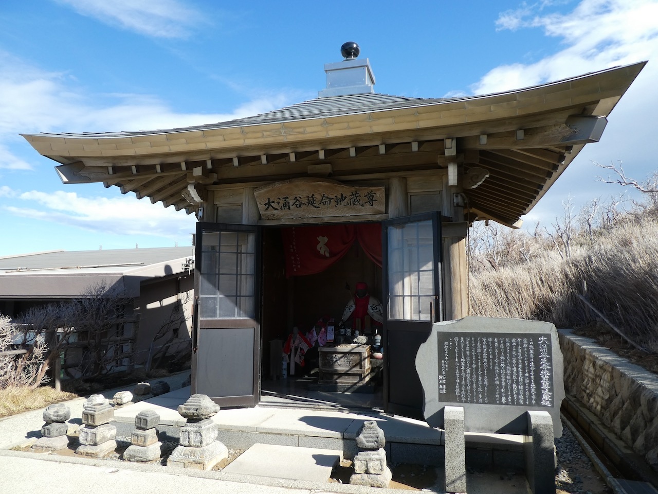 なんと弘法大師がここ大涌谷にあまりの地獄のような噴気に心を痛めてお地蔵様を刻んだ、とのこと。