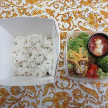 池袋西武百貨店の地下1階にある弁当と惣菜を売っている店です。ライスと惣菜が別々になっているロコモコ丼と十八穀米のタコライスを購入しました。ロコモコ丼にはハンバーグ、目玉焼き、ころっとしたジャガイモ、数種類の野菜が入っていました。タコライスはひき肉がたっぷり入っていて、味付けはピリ辛のトマトソースでした。どちらも価格の割に美味しく、保冷材もつけてくれたのは嬉しかったのですが、スプーンだけしか入ってなく、目玉焼きやハンバーグはとても食べにくかったです。箸をつけてくれることが、唯一改善してほしいポイントです。