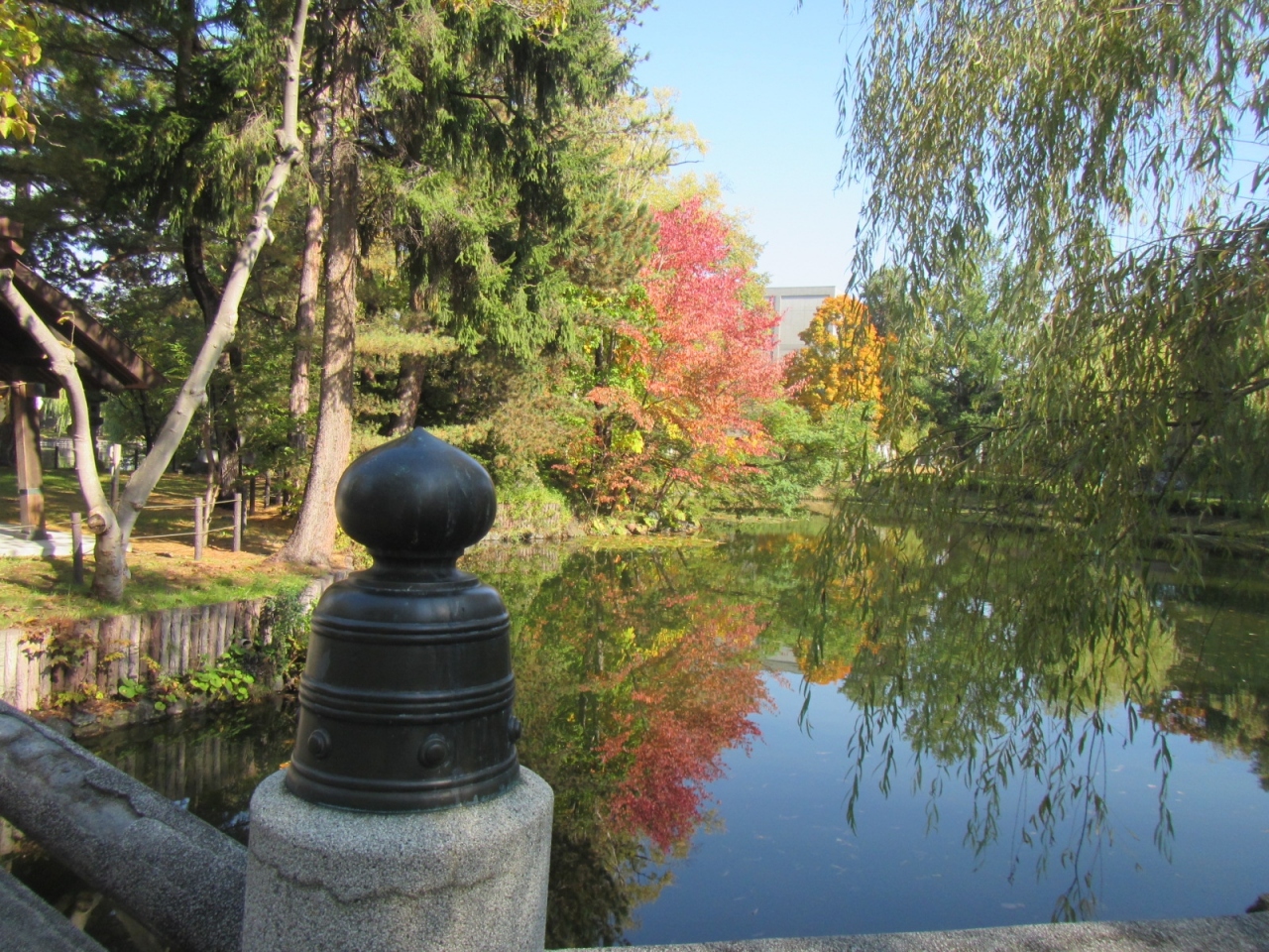 なお、10月中旬から下旬にかけて(特に10月20日前後(2020年の例))、当地の紅葉がきれいですが、紅葉は木々が多い公園内の方が楽しめます。