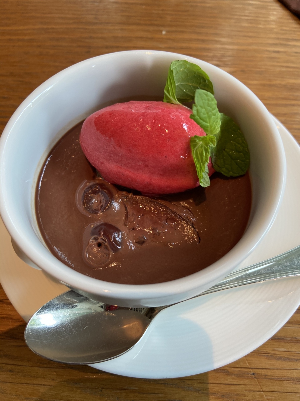 パレスホテルの一階にあるレストランです。週末のランチに伺いました。皇居からほど近く、窓が大きく開放的な店内です。コースはどれもおいしく頂きましたが、デザートのいちじく入りのチョコムースが美味でした。予約した方がベターです。