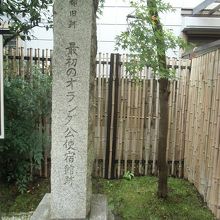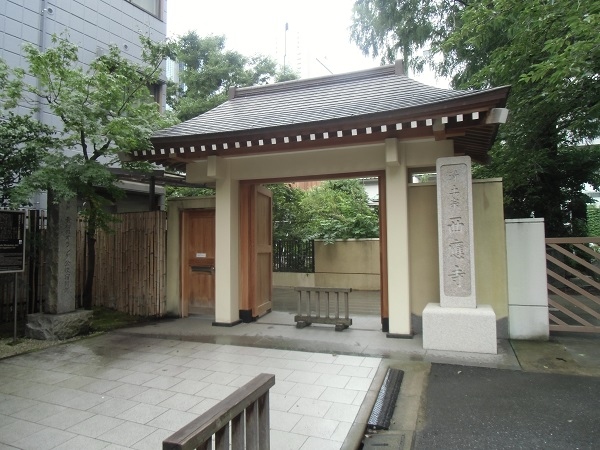 田町駅A1から北東へ約560mのところにある西応寺の門前に碑があります。