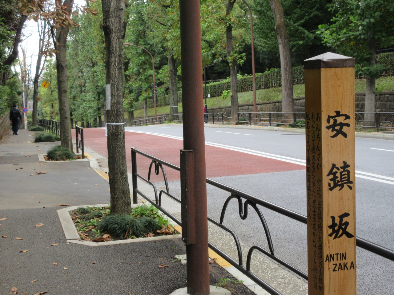 迎賓館裏の南元町交差点から赤坂御用地に沿って権田原交差点までの長い坂道です。赤坂御用地の向かいにはマンションや東京神社庁や明治記念館が建っています。明治記念館側の歩道を南元町交差点から歩きました。平日午前の交通量は多かったです。歩道を歩く人は少なかったです。赤坂御用邸の木々を見て歩いたものの、坂下からはきつかったです。