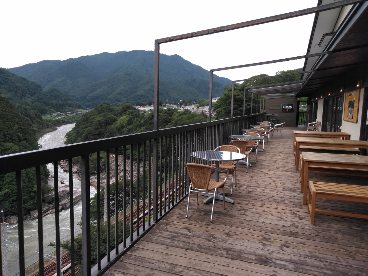国道19号沿いにある「ねざめ亭」というお土産屋さんからも見られます。こちらのお店のテラスからは、「寝覚めの床」が見られます。軽食も食べられますので、絶景を眺めながらの休憩タイムを楽しめます。女性専用の絶景トイレもぜひ入ってみて下さい。