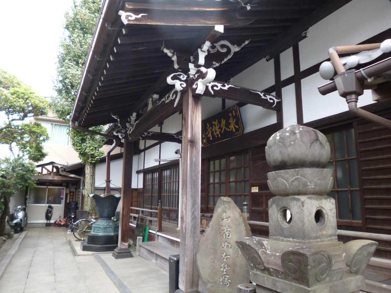 谷中の三崎坂沿いにある曹洞宗寺院の永久寺は、山門と山門の左右の壁に特徴を感じたお寺です。山門は冠木門の上に屋根を乗せたような、あまり見たことのない外観でした。