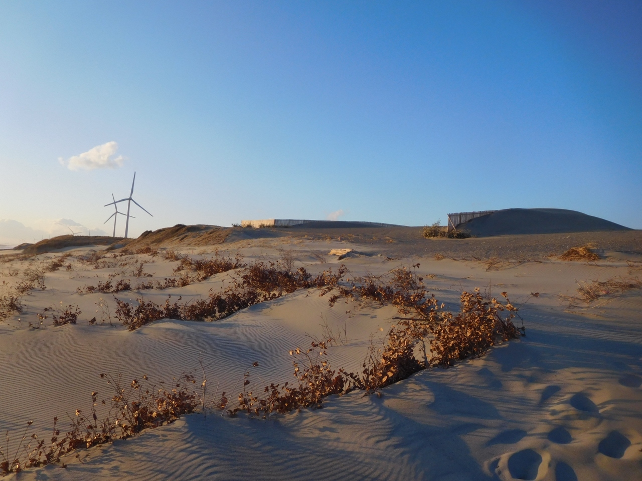 風が強く、砂が目に入らないか心配だった。そんなわけで散策はあまりできなかったが、砂浜とは桁違いの風景を楽しめた。