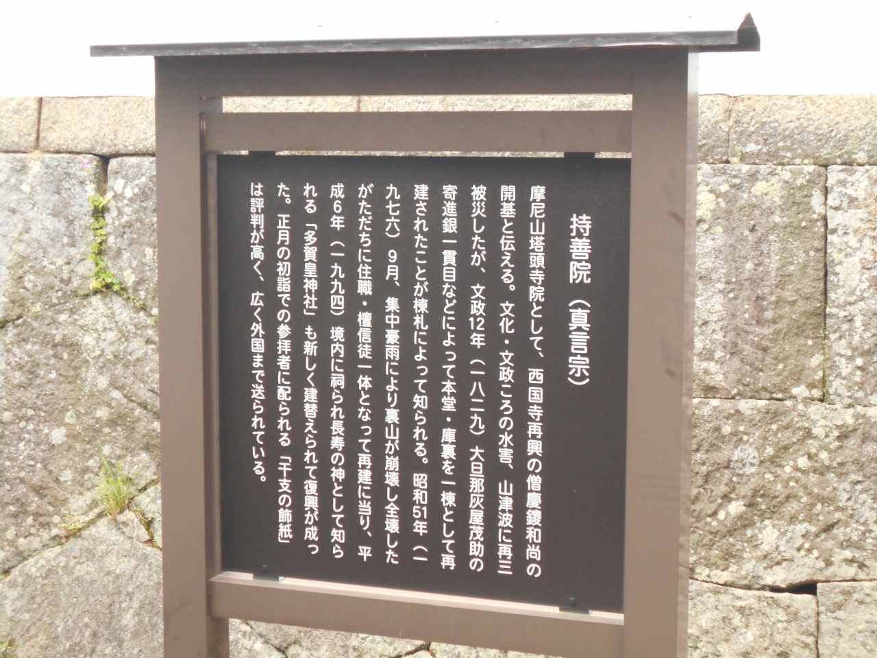 巨大な草鞋で有名な西国寺の山門を抜けると左手にある真言宗の寺院です。尾道古寺めぐりで参拝しました。平安時代からの神仏習合で、寿命の神様で知られる多賀皇神社が祀られています。正月3元日に参拝者に配られる手作りの干支の「飾紙」が新年を迎える縁起物として人気があるそうです。