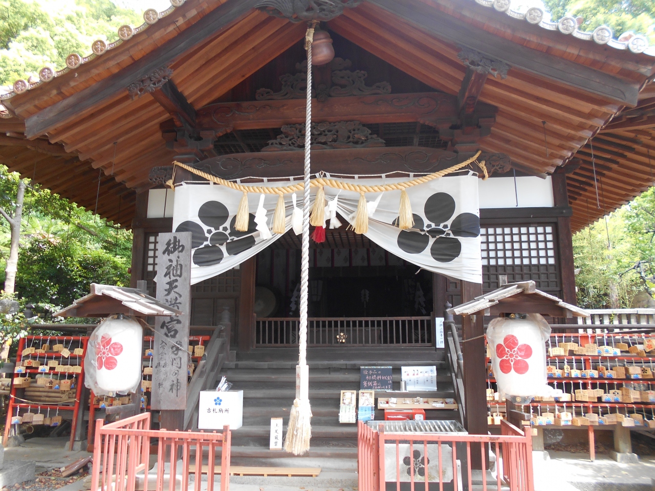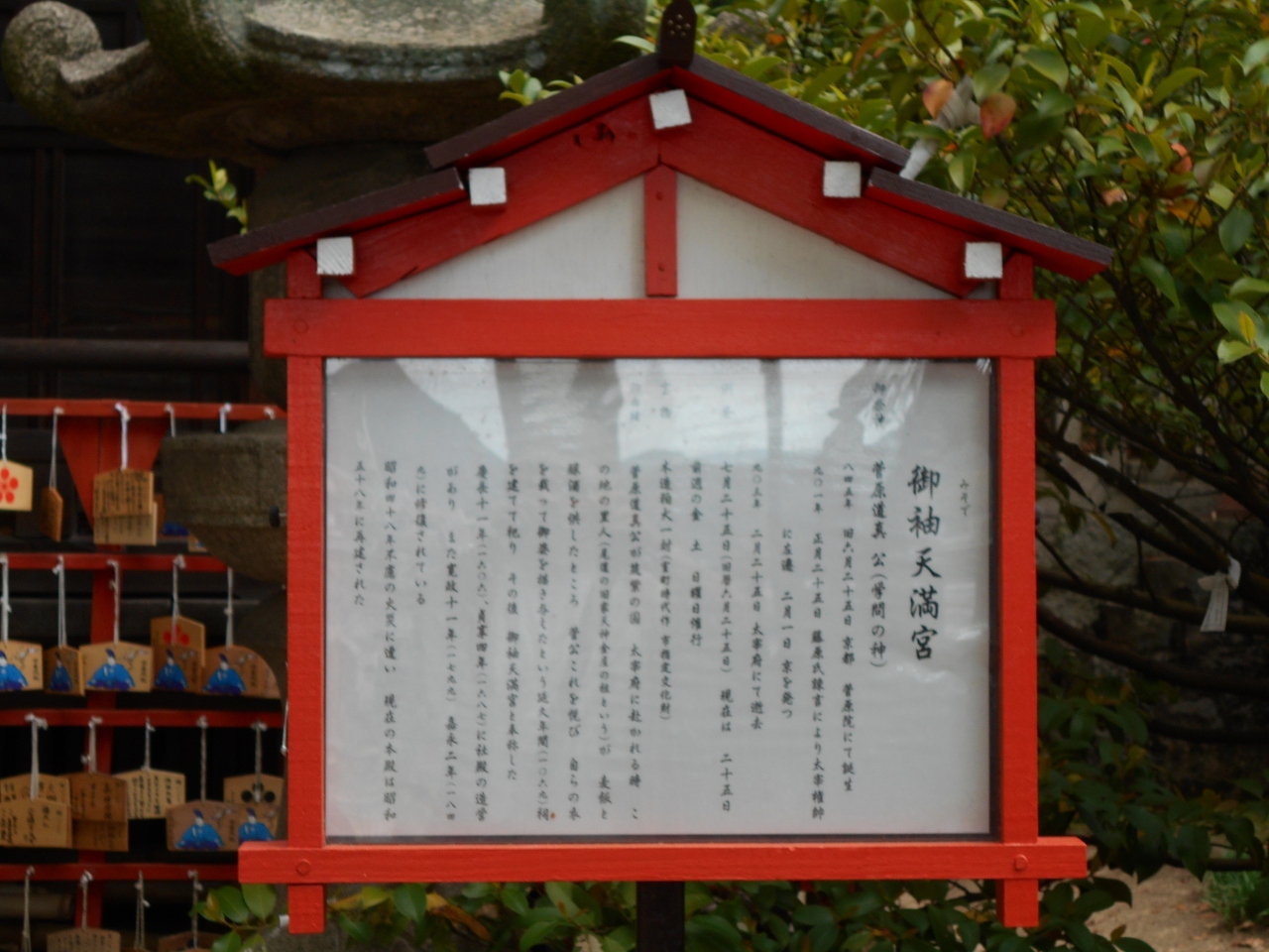 大宰府に左遷された菅原道真公が尾道でご馳走されたお礼に片袖を破り、自分自身の絵を描いて与えたのがこの神社の由来だそうです。受験合格にはご利益のある神社ですので受験シーズンは多くの受験生が訪れるそうです。また、映画「転校生」のロケ地で尾美としのりと小林聡美が転げ落ち、そして入れ替わった石段ある神社です。