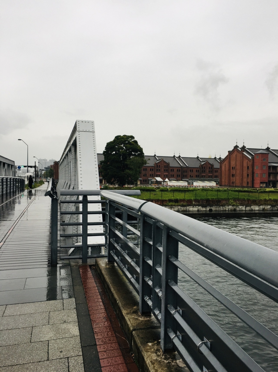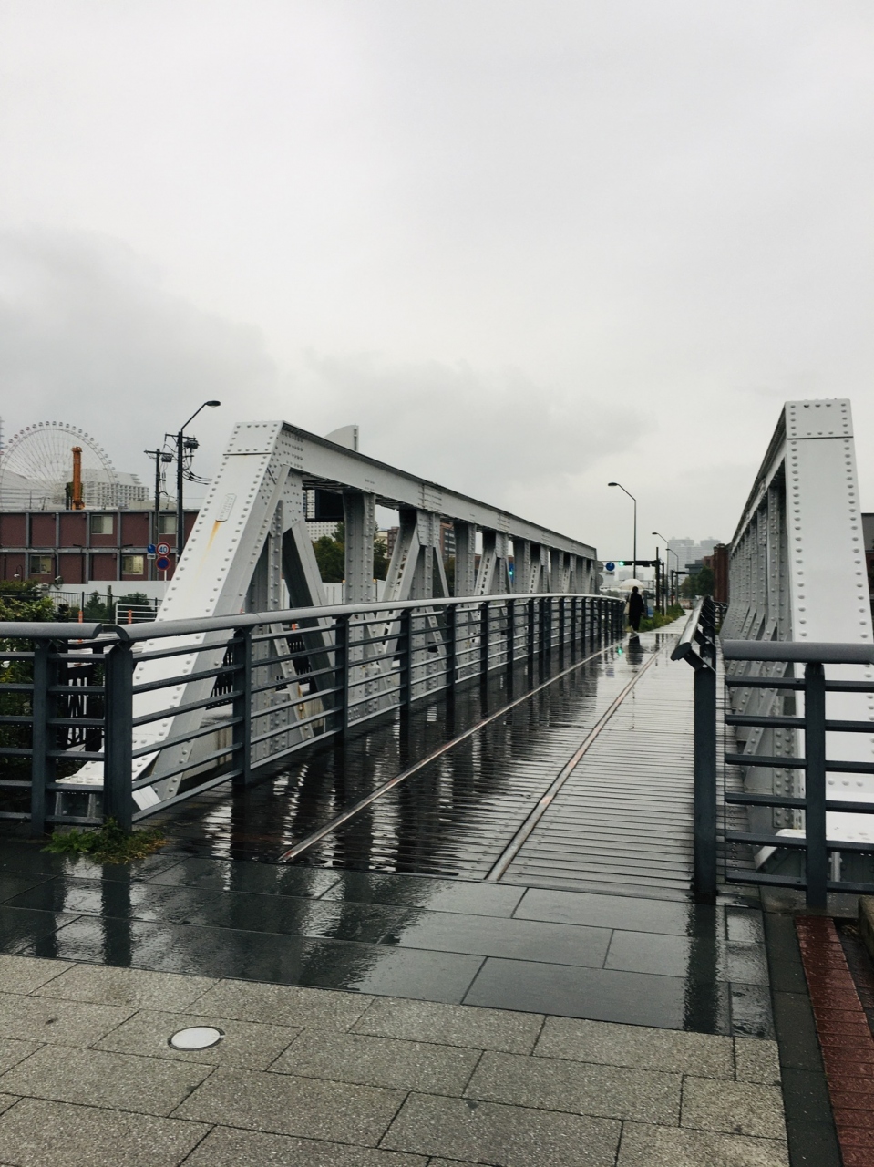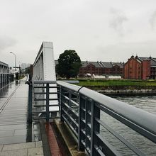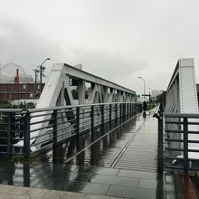 赤レンガ倉庫と象のパークを結ぶ橋で車道は普通の橋でしたが、歩道は鉄橋のような感じがしましたが下には電車が通ってなく川です。橋からは港の風景が望める短い橋で、左右は鉄でしたが下は木で、釘の縫い目が良い感じでした。