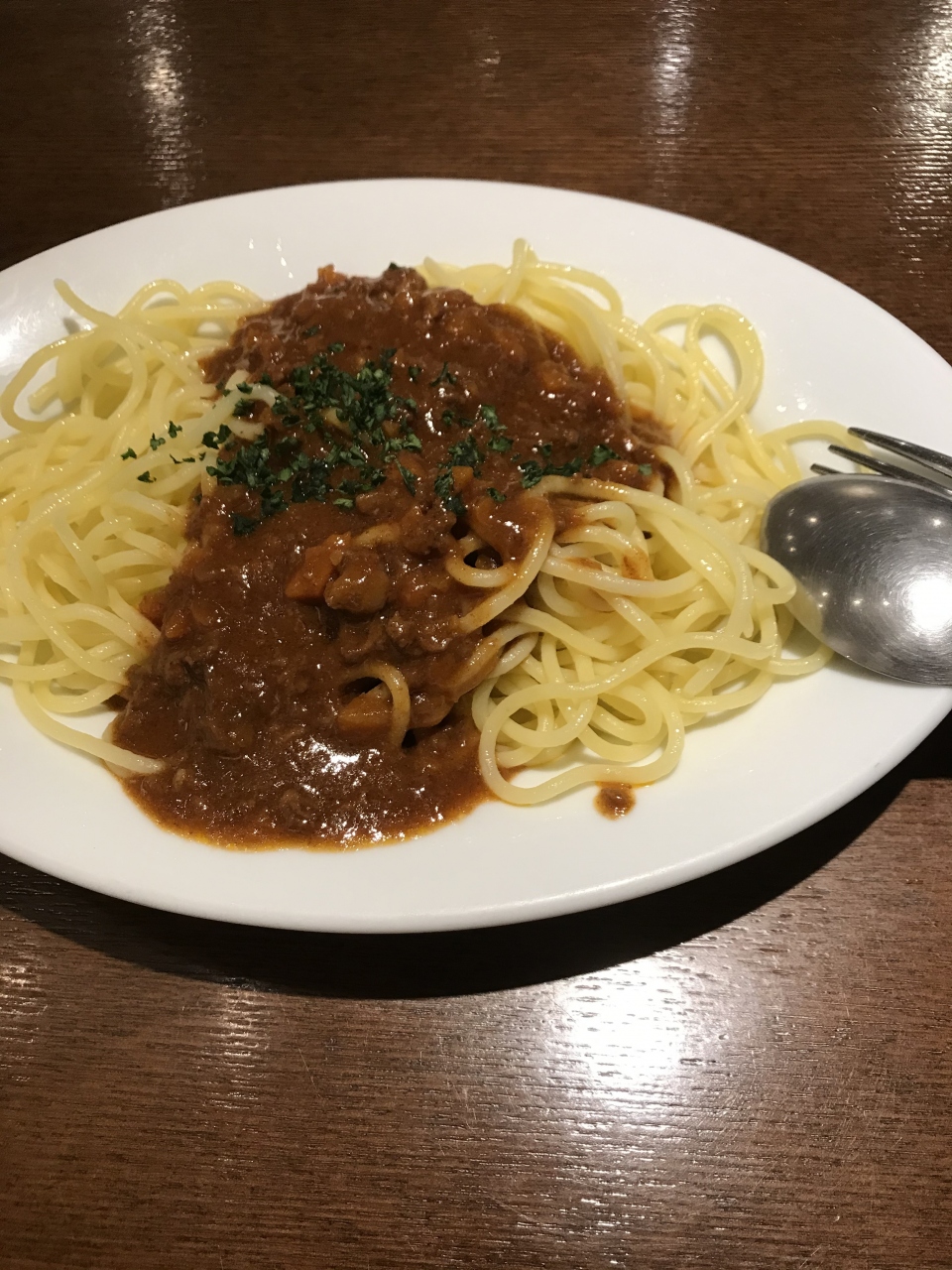 ミートソースは「粗びき」感はなかったけど、トマトの酸味がきいていて美味しかったです。