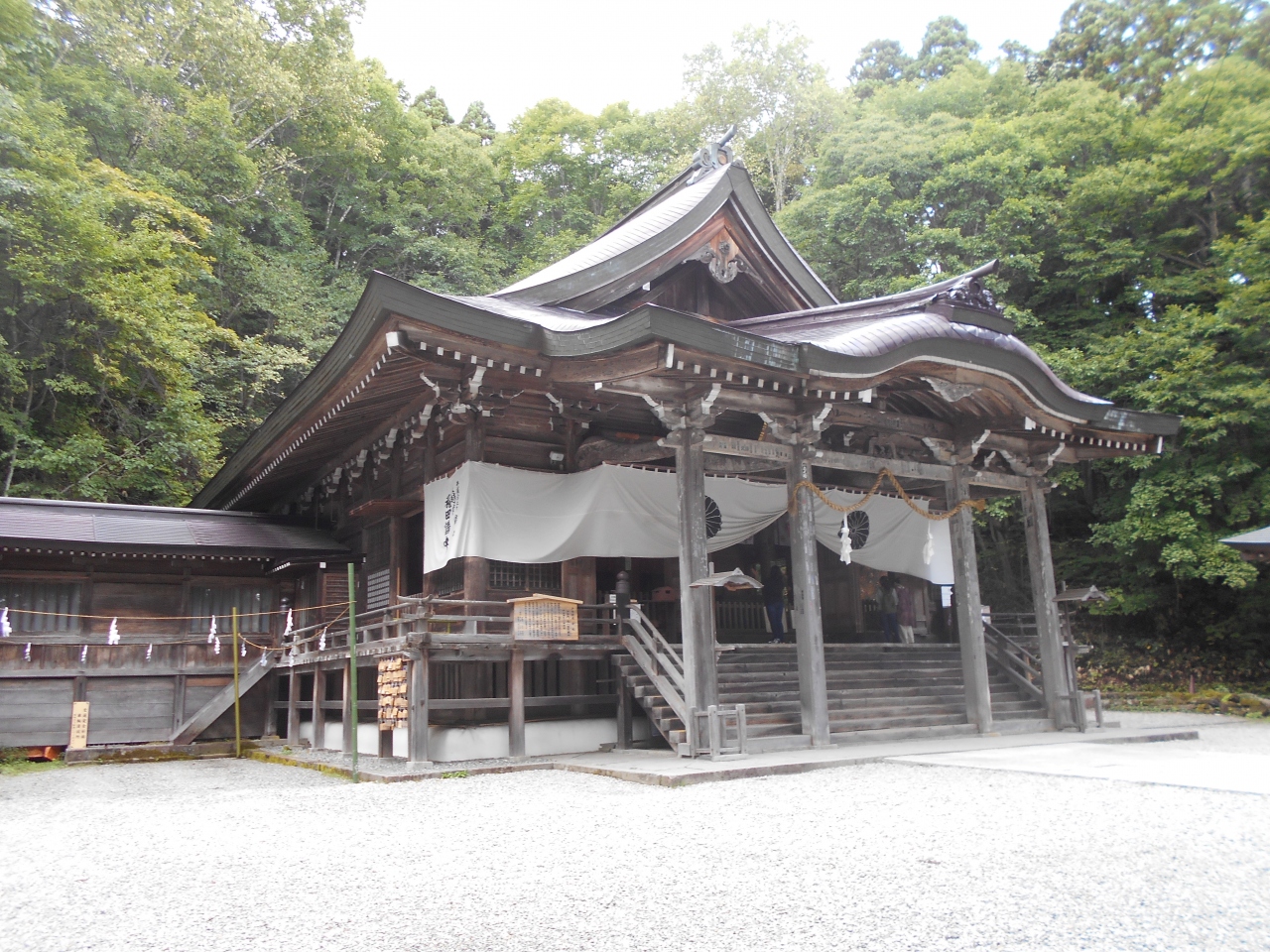 戸隠の中心に位置していて周囲には蕎麦屋などが並び比較的にぎやか。奥社は歩かなければならないので、中社だけお参りして帰られる方も多いようで、ここだけは参拝者が多かった。社殿も五社の中ではいちばん立派。ご神木の三本杉に触る人が多いのか、木の皮が剥げていたのは気の毒。