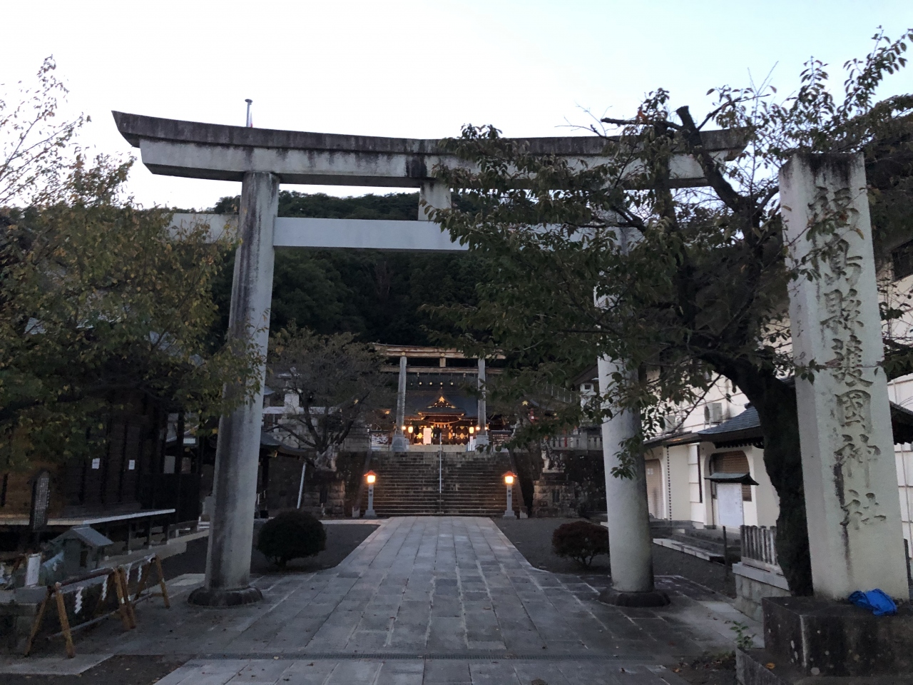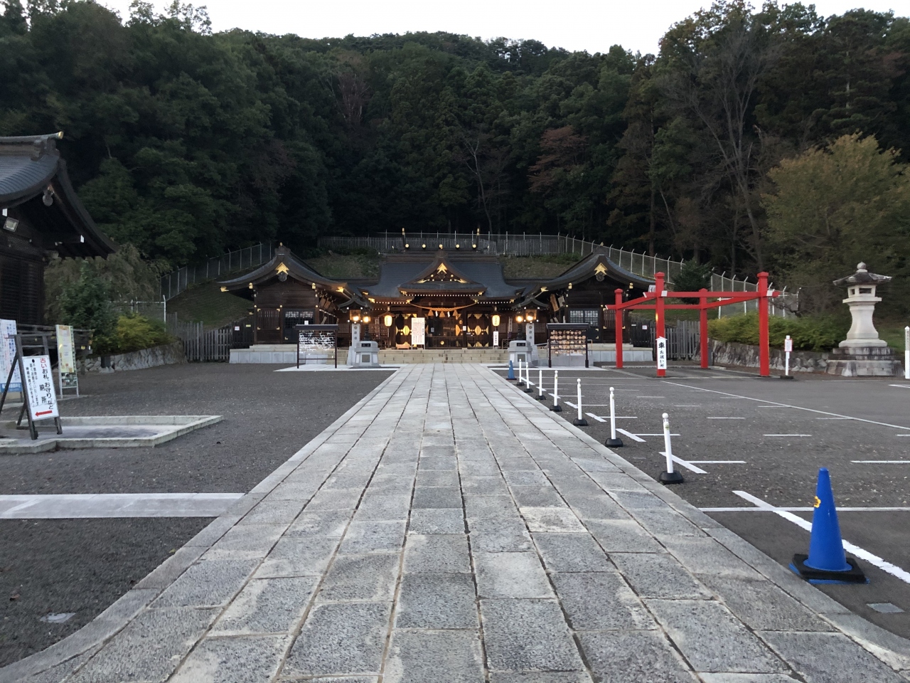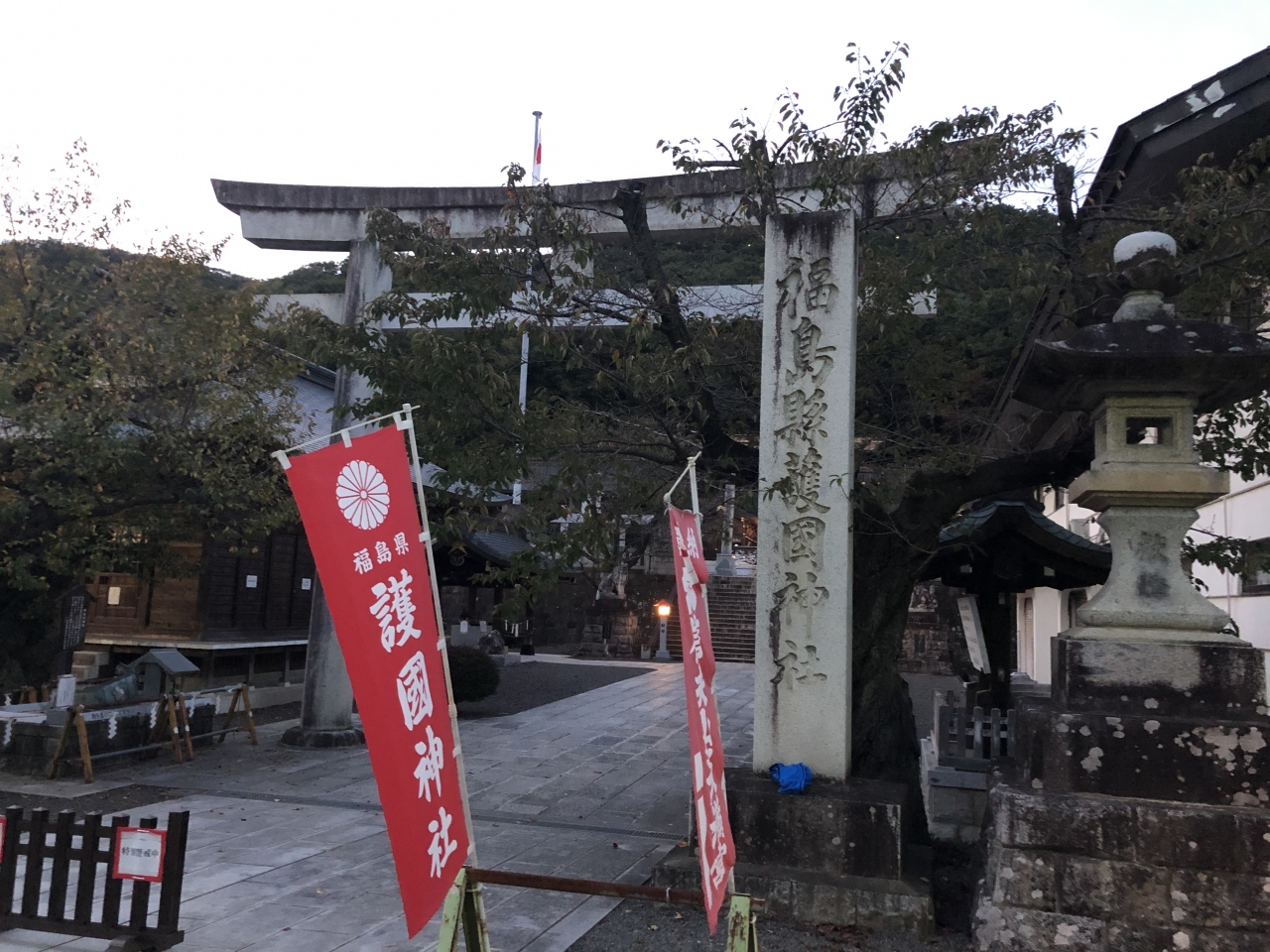 福島駅の北東にある市内随一の規模を持つ護国神社、緑深い信夫山の山麓にある。福島駅からは車で10分ほどかかる。事業の安全を願い、地元の方のお勧めでここで安全祈願祭を開催した。コロナ禍の中、感染対策を樹分実施した上での開催となった。