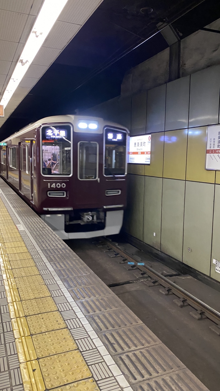 御堂筋線よりは空いていますが、大阪の主要路線のひとつが堺筋線。阪急千里線にも直通しているので、大阪市の南側で阪急電車を見ることが出来ます。本数も多く観光客にも使いやすいです。阪急メンズに行く場合は御堂筋線よりもこちらの線の方が近いです。