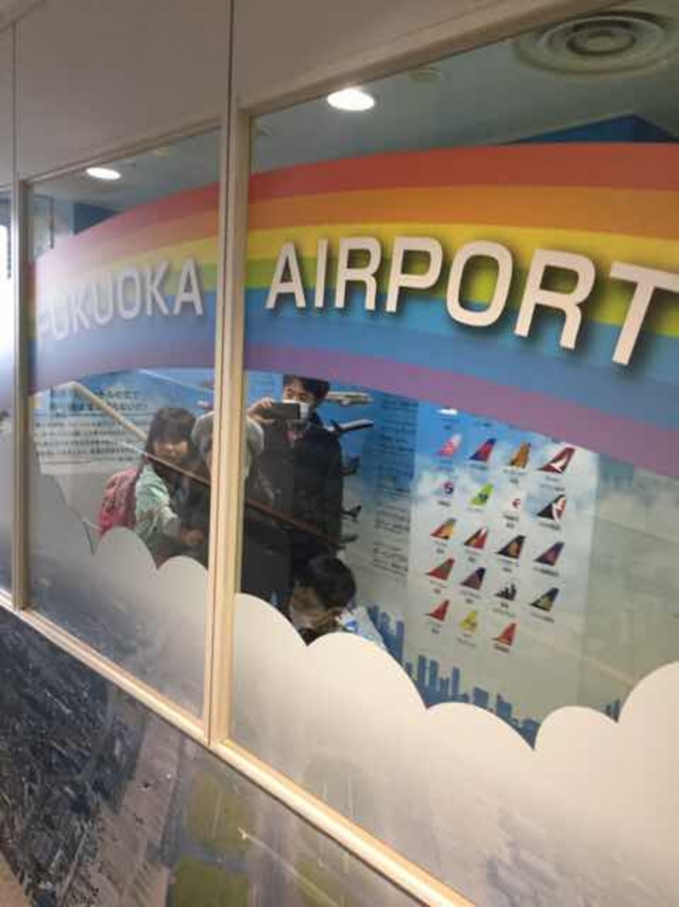 ターミナルビルの4階にある展望デッキの入り口手前にある福岡空港のギャラリーです。