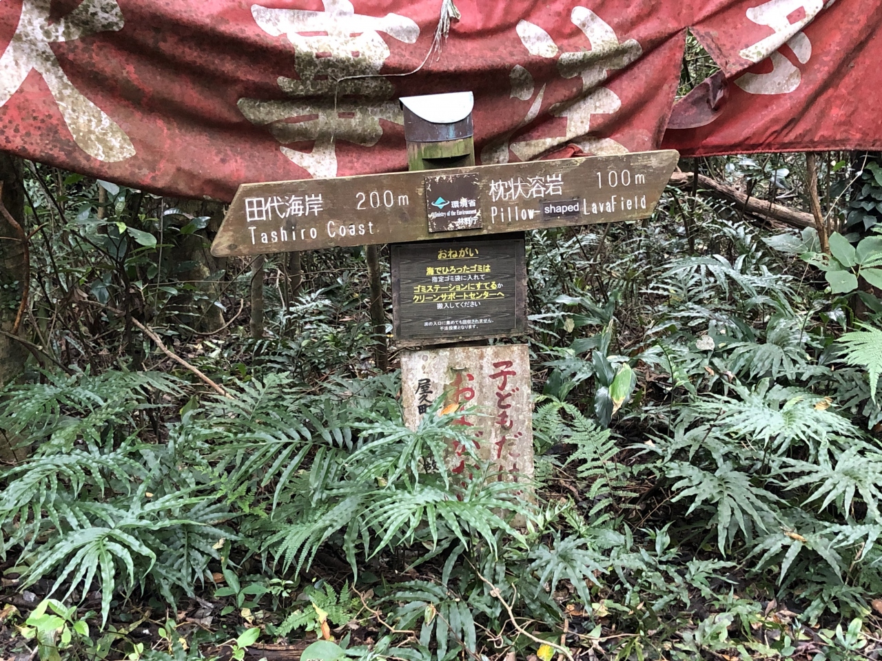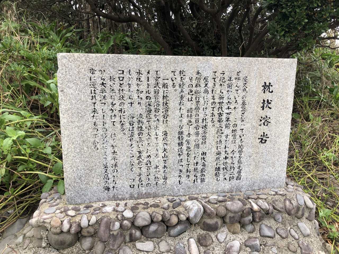 屋久島に行く前にいろいろと調べていたら、田代海岸に枕状溶岩があると知って見に行ってみました。看板も出ていて、場所はわかりやすかったですが、どのあたりに注目してみればいいのかは勉強不足でわかりませんでした。周辺の景色も美しく、散策が楽しめました。