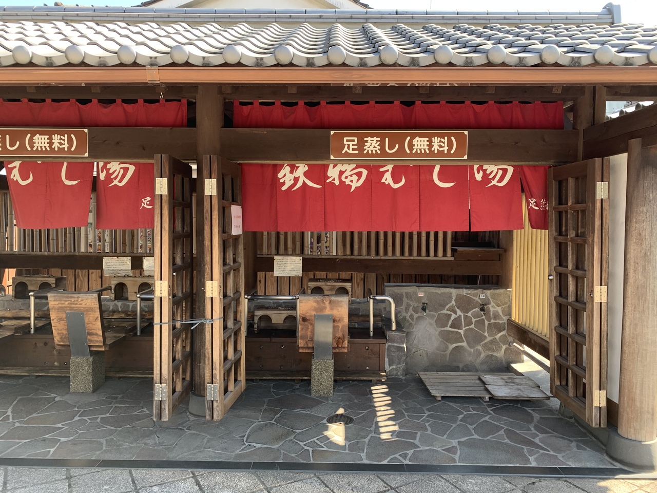 鉄輪蒸し湯広場のすぐそばに鉄輪蒸し湯があります。こちらは蒸気の上がる床の上に薬草が敷き詰められていてその上に横たわって入ります。独特な薬草の香りが心地よいです。又隣には無料の蒸し湯の足湯がありました。穴の開いた板張りから蒸気が出ていて足を入れるというものです。