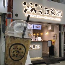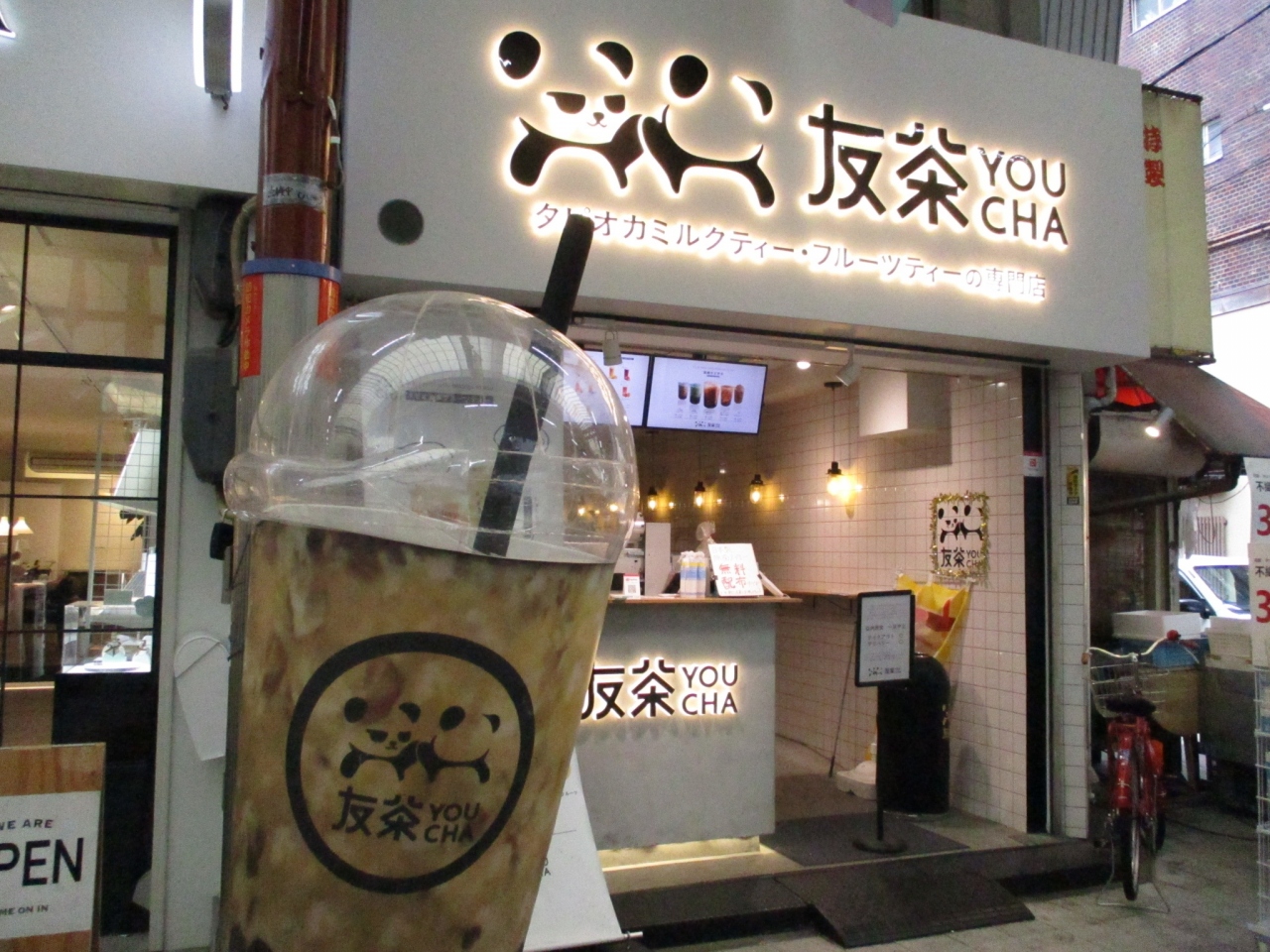 天神橋筋商店街にあるタピオカドリンク・フルーツティーのお店です。天神橋筋でタピオカドリンクのお店はここしかまだ知りません。パンダのマークが特徴です。今はタピオカティー、わりとすぐに買えるようになったと思います。商店街はとても長いので、飲みながら持ち歩きにも便利です。