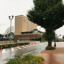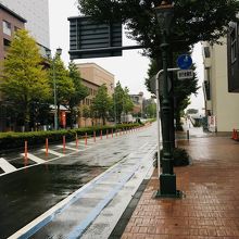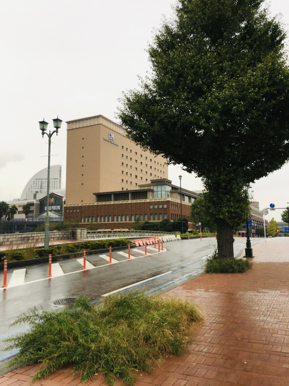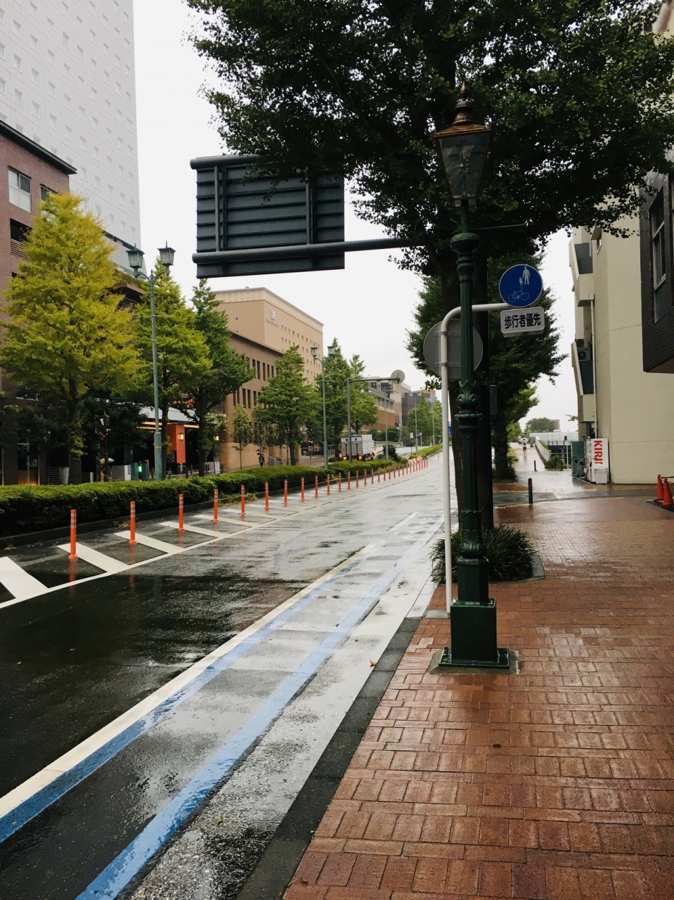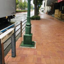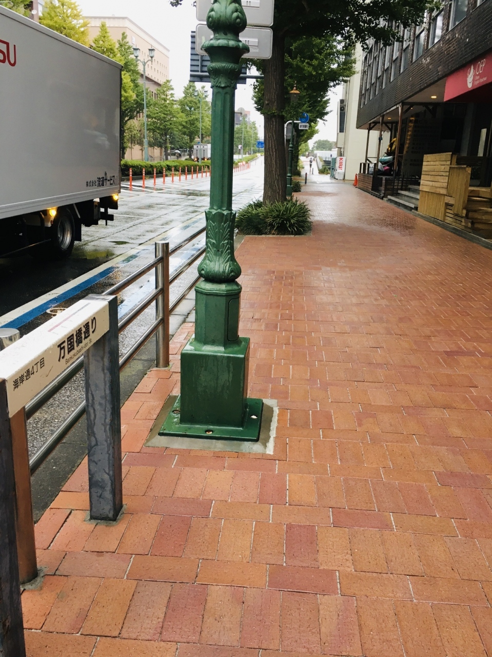 関内や馬車道方面から埋立地に向かう通りで車道片側1車線、左右には歩道があります。何処にでもあるような通りですが歩道の地面がレンガ色で、街灯が洒落ていました。運河を跨いで橋も架けられていました。車道の真ん中にはポールがあります。