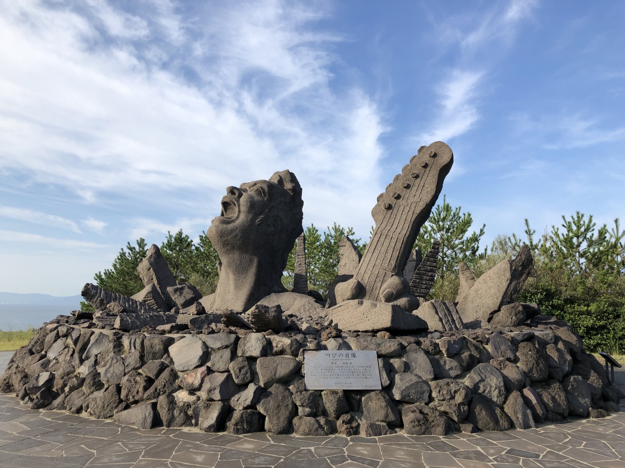 「叫びの肖像」は2004年に開かれた長渕剛のコンサートを記念するモニュメントで、桜島にあるスポットの中でも比較的新しいほうに入るのではないかと思います。駐車場やトイレが整備されていてドライブの途中にも立ち寄りやすいですし、迫力のある像は一見の価値があると思います。