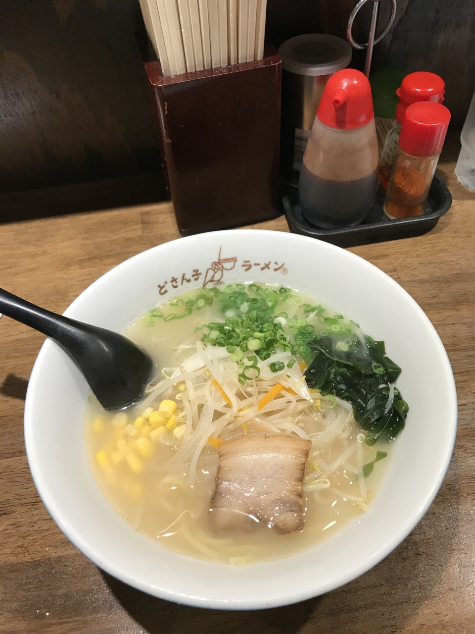 塩ラーメンを、もやしとコーン、ねぎの彩りがなかなか良く美味しく頂きました