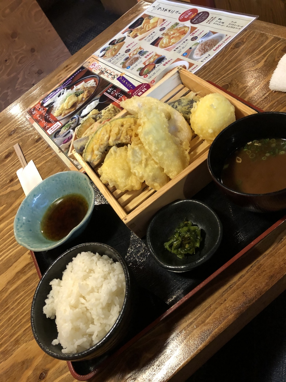 Go To Eat キャンペーンを利用して、天ぷら酒場 KITSUNE 一宮店を予約しランチを食べに行ってきました。ランチメニューは8種類ありましたが、看板メニューのとり天定食を注文しました。とり天が3個に蓮根・茄子・半熟卵・南瓜の天婦羅。ご飯に味噌汁が付いた定食です。