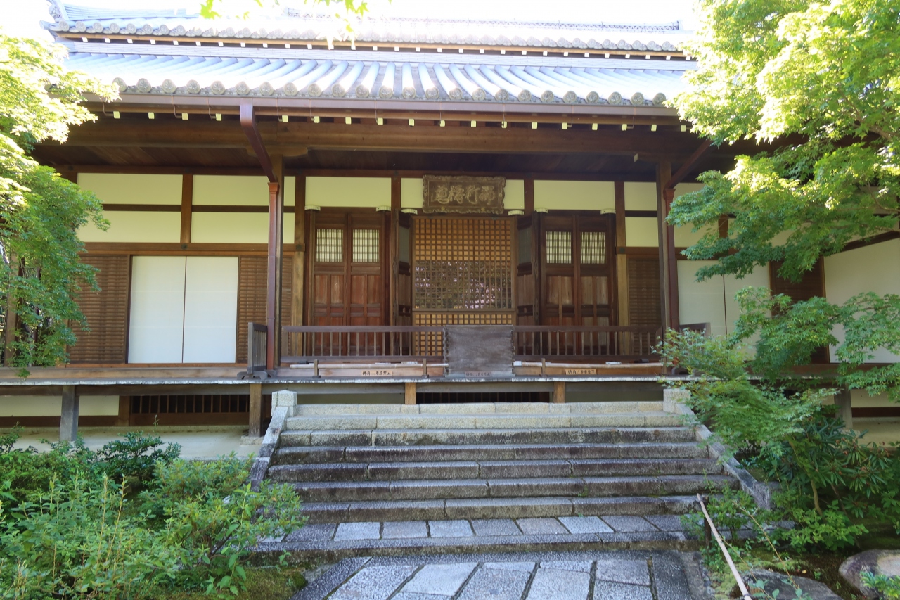 常寂光寺の仁王門を潜り、その先の石段を上り切った所正面にある建物が本堂です。慶長年間に建てられた桃山城の客殿を移築したものだそうです。面白いのは屋根の瓦葺きが二重構造の屋根になっているところ。それ以外は余り見応えはないかと思います。