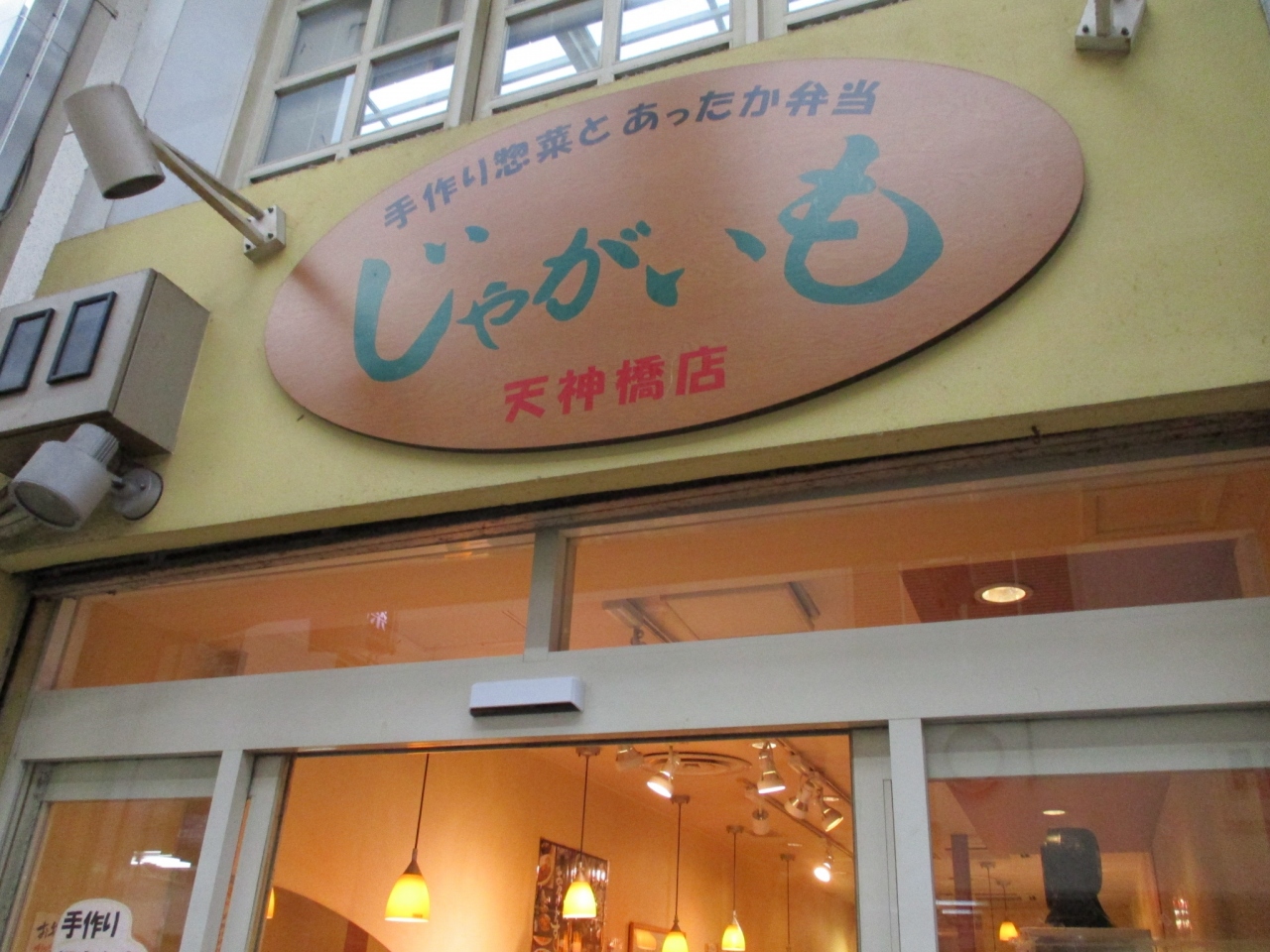 じゃがいもは天神橋筋にあるお総菜やお弁当のお店です。少量のおかずからあるのでいろいろと選べるのが魅力です。サラダなどを購入しました。レジの横にスーパーのサッカー台のような場所があり、ロール状のポリ袋があります。レジ袋を買わなくても大丈夫でした。