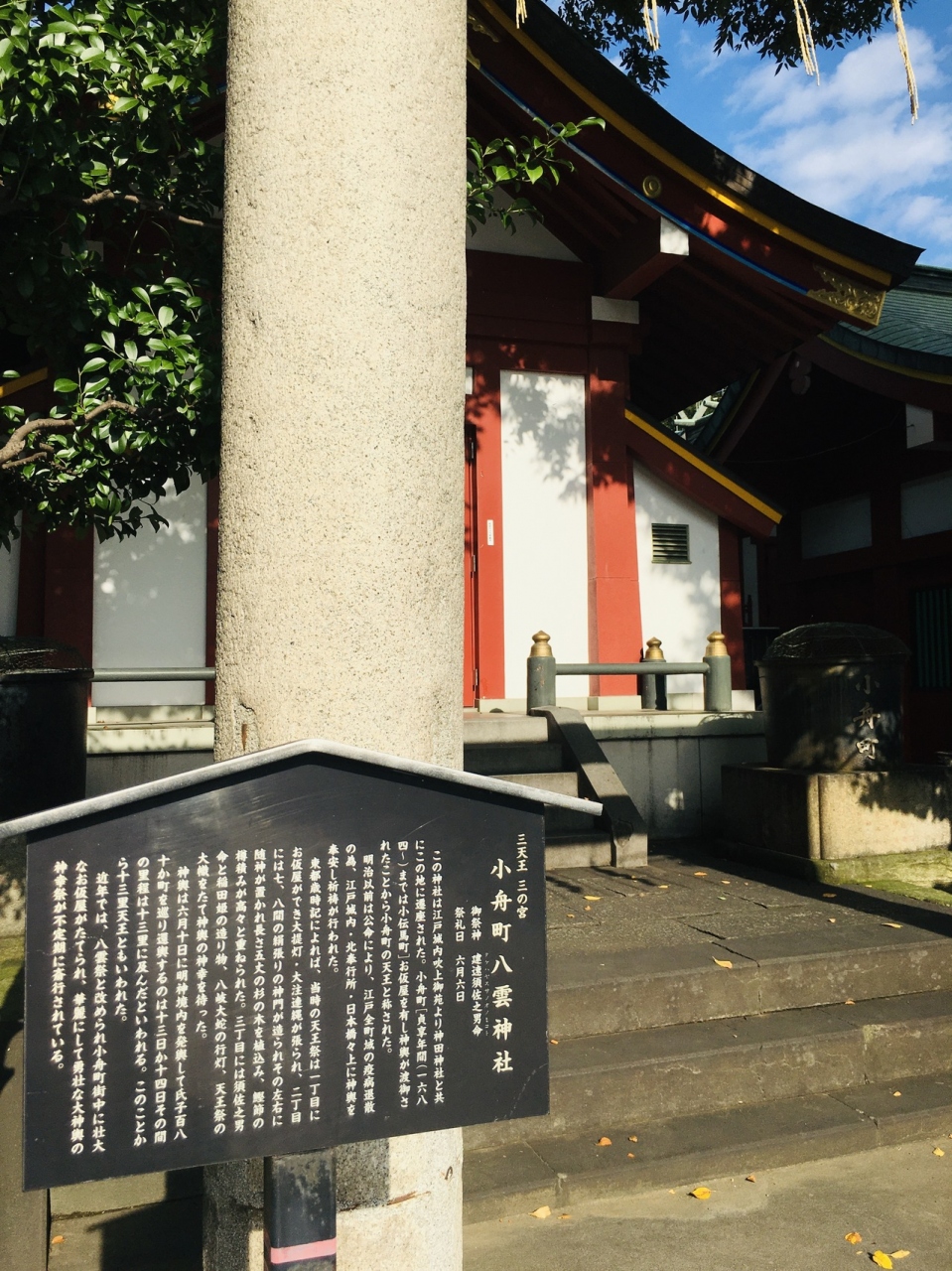 江戸城内の吹上御所内にあったものをこの地に移してきた神社です。社殿の後方には木が覆い被さっているような風景で天水桶が社殿の左右にあり網が掛けられていました。階段を3段、再び3段上がるとお参りでき、建物の鍵が閉まっていました。
