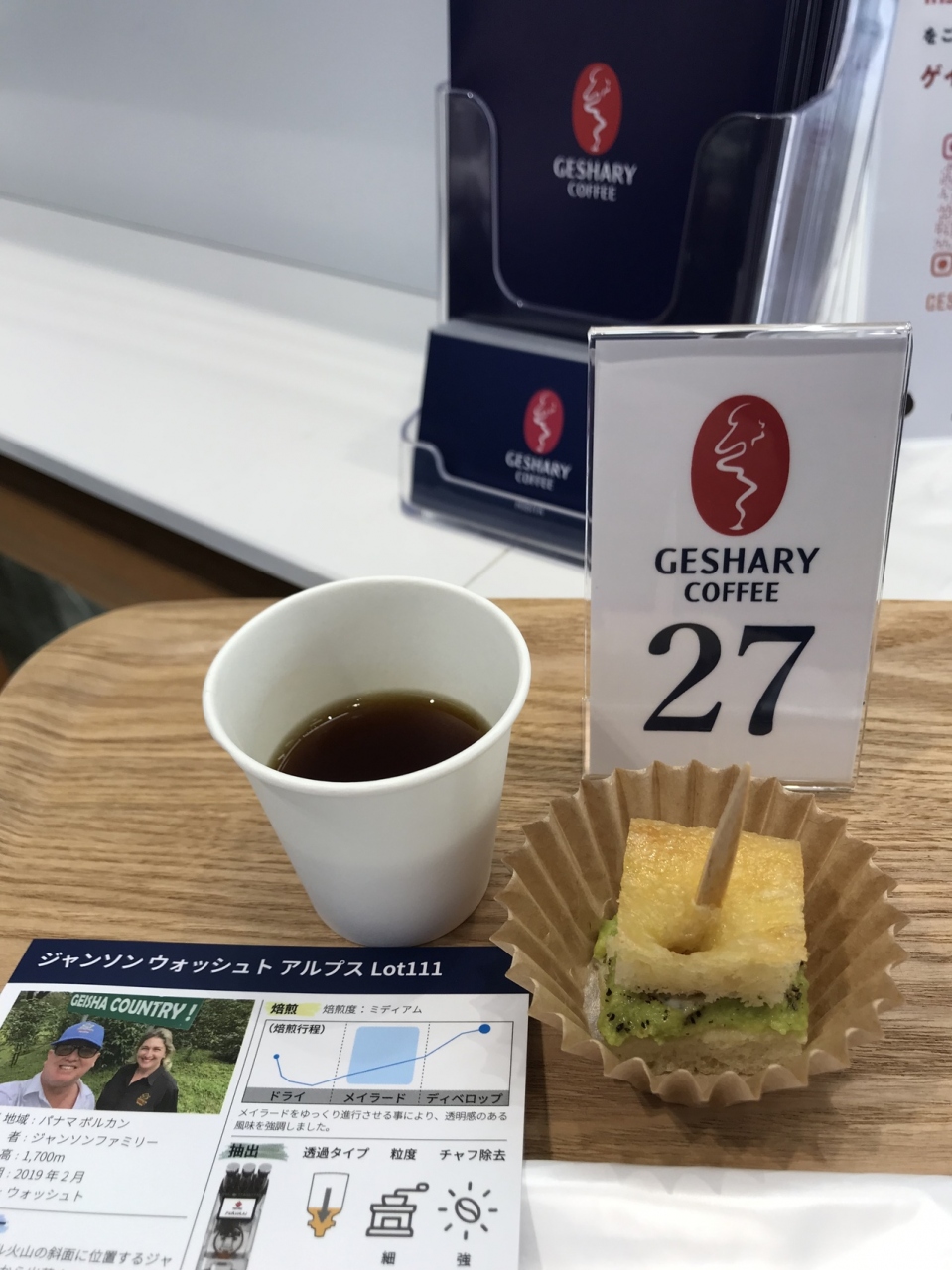 日比谷公園のベンチでコーヒーを飲みながら休憩しようと思い、お店を探していたところゲシャリーコーヒーを見つけました。お値段お高めですが、フルーティで上品な味わいで美味しかったです。アップルパイが絶品でした。