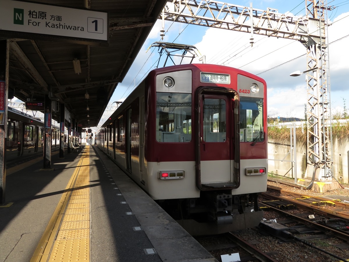 近鉄南大阪線の道明寺から、柏原駅までを結ぶ道明寺線。2両の電車がのんびり走ります。大阪阿部野橋方面からの電車で到着した場合は、対面で乗り換えができます。休日昼間時間帯の利用でしたが、思いのほか利用があり、住民の足となっている印象でした。大和川を渡り、藤井寺市から柏原市へ向かう路線ですが、その間の需要も一定程度あるようです。