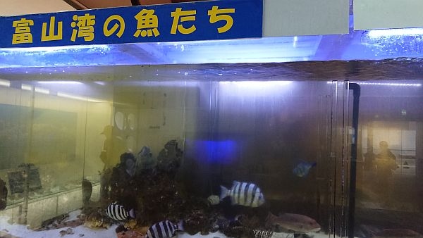国道8号と国道472号の交差点の北西側にある道の駅です。2つの国道が交わる場所にあるため、大変賑わっていました。ですから、休日のお昼時に行くと、昼食を摂るのに多少の待ち時間が生じます。建物内には、富山湾で見られる魚の展示水槽があり、小さい子どもが釘付けになっていました。