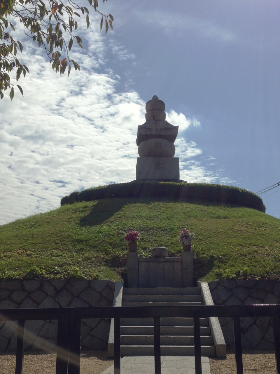 鼻塚とも言われている五輪塔です。豊臣秀吉が朝鮮出兵の時、勝者のあかしとして朝鮮兵や明国兵の耳や鼻をそぎ取って持ち帰ったのを供養している塚。2万人の耳や鼻が葬られていると言うので驚きました。また、こうして供養されていることをハングル語でも説明されていました。