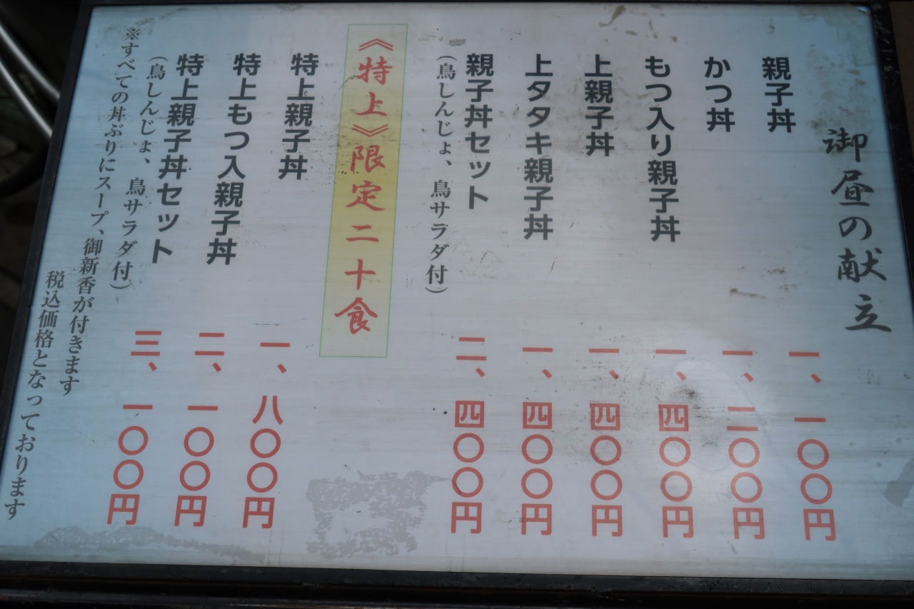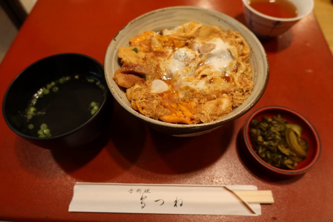 末広町駅から150m程、中央通りから一筋、東側の筋に鳥料理専門店の鳥つね自然洞があります。土曜日の昼開店前に行くと、店前には20人程の列ができる程で、さぞや美味しい店なんだろうとワクワク。店内は1階がカウンター席とテーブル席、2階は座敷席でギリギリ1回目に案内されました。頂いたのは1日限定20食の特上親子丼。1800円と高いとは思いますが、名古屋コーチン、比内地鶏を使った親子丼はフワトロの卵としっかりとした鶏肉が相まって絶品。これは美味いと言える親子丼でした。