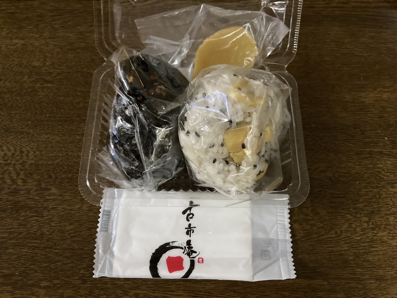 越後屋甚兵衛さんの前を通るとどうしてもおにぎりを買わずにはいられません。本当は栗のおにぎりだけを買いたかったのですが、見栄を張って2個購入。栗おにぎりは見た目以上に栗がたっぷり入っていました。ついでに買った昆布おにぎりも美味しかったです。おにぎりの値段は京都駅の土産物店と同じくらい。それなら伊勢丹デパ地下で買おうかなと思ってしまいます。