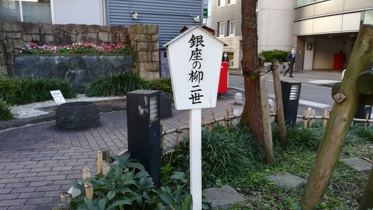 銀座から新橋へ向かった高架下の8丁目辺りに柳の碑があります。