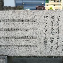 西条八十作詞、中山晋平作曲の銀座の柳の楽譜が刻まれていました。