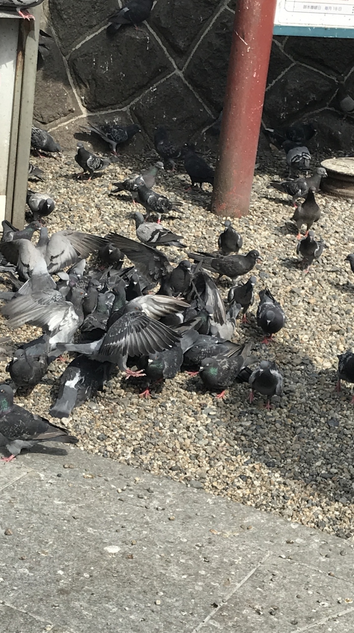 境内には鳩がたくさんおり、50円で販売されてるエサを購入しようものなら、エサを手にした瞬間一気に鳩に囲まれてしまいました。かなり人馴れしてるようで、肩や頭に乗ってくる鳩も‥‥。